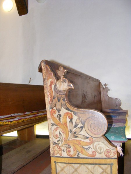 Dancs Imre székén található egy faragottfestett kerecsensólyom, ami a magyarság közkedvelt szimbólumának, egy turulmadárnak felel meg. Buday László széke egyszerűbb, puritánabb kiképzésű. A falusi kántortanító széke 1766-ban készült, mellvédjén a „paradicsom” jelképei láthatók: életfa, alma, körte, dinnye és allegorikus gyümölcsábrázolások. A bejáratnál lévő pad előlapján ismétlődik az életfa motívum. A mester a szószéken nyújtotta tudása legjavát. Arányos, szépen tagolt, hangvető koronáján bibliai idézet is van, 1766-ban készült. A mennyezet kazettái között nincs két egyforma.